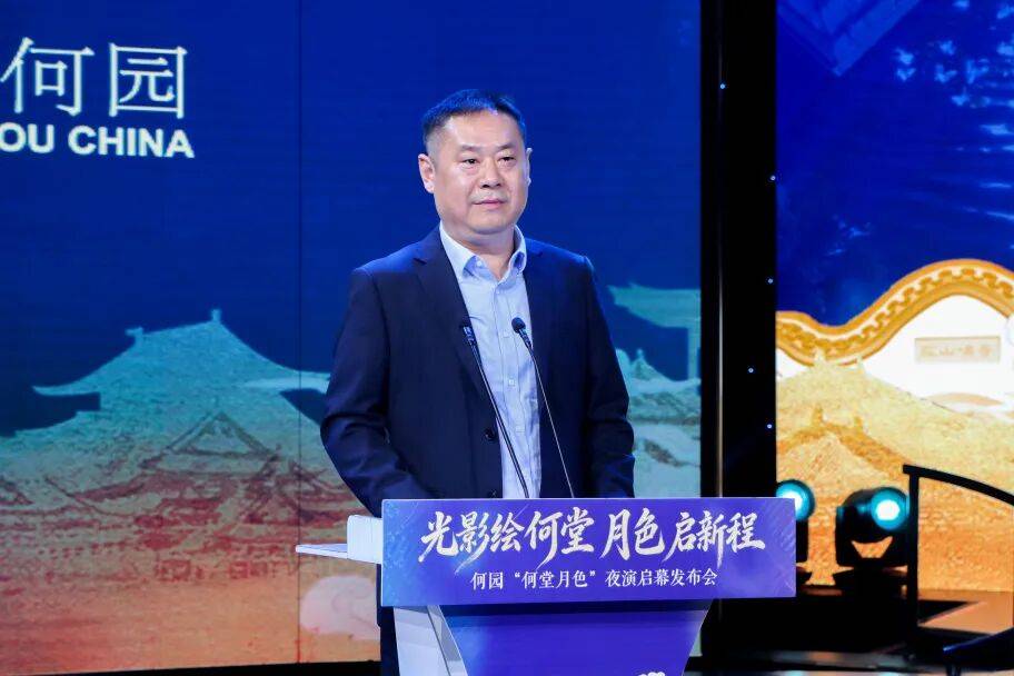 推介环节中,何园管理处党支部书记、主任顾伟东详细介绍了“何堂月色”沉浸式夜演的创作背景、核心内容、呈现形式,以及何园春节期间系列文旅活动安排。
